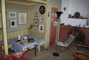 Der Besuch im Atelier kommt einer Zeitreise in die Vergangenheit gleich. Es scheint, als hätten die beiden für einen Moment ihre Arbeitsstätte verlassen, um im nächsten Moment zurückzukommen. Carl Roeschs Malutensilien, seine Palette und eine Auswahl von Pinseln sind noch da, ebenso zahlreiche vollendete Werke, ein Teil seiner Bibliothek und seine Mosaikwerkstatt. Auf seinem Schreibtisch liegt noch immer seine Pfeife …