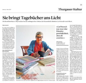 Dabei erweist sich Roesch als ein aufmerksamer Beobachter und Kommentator. Er war vielseitig in der Schweizer Kunst vernetzt und nahm rege am zeitgenössischen Kunstgeschehen teil. So bietet er in seinen Tagebüchern einen Einblick in die Kunstwelt des 20. Jahrhunderts, der Unbekanntes und Überraschendes bereithält. Die Zürcher Kunsthistorikerin Tildy Hanhart mit Diessenhofer Wurzeln hat seine Tagebücher in einer langjährigen Arbeit minutiös transkribiert.